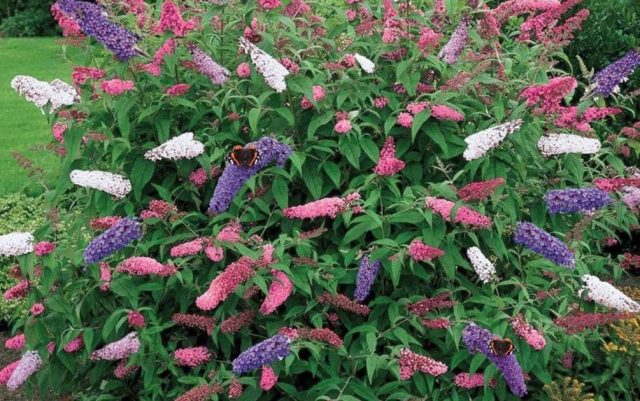 Eine interessante Sorte ist Tricolor buddleya - die Sorte sieht sehr ungewöhnlich aus. Der Strauch erreicht eine Höhe und Breite von 2 m und blüht in drei verschiedenen Schattierungen gleichzeitig - Weiß, Rot und Dunkelviolett. Im Garten sieht die Vielfalt sehr beeindruckend aus, was der Grund für die hohe Nachfrage nach Tricolor Buddley bei den Sommerbewohnern ist.