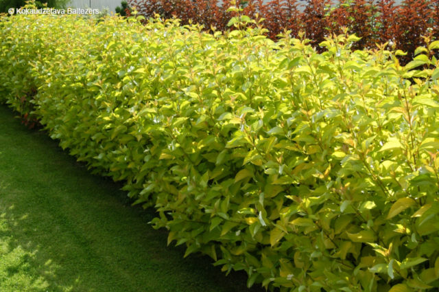 Die Pflanze wird von Gärtnern aktiv zur Dekoration von Gebieten genutzt. Die Verwendungsmöglichkeiten von Derain Aurea sind unterschiedlich: Wenn sich der Standort in dem zu blasenden Bereich befindet, wird der Zaun ersetzt. Dank seiner Unprätentiösität und seines dichten Laubes schützt es andere Pflanzen. Um einen schönen lebenden Zaun zu bilden, wird ein Triebschnitt verwendet, der die gewünschte Form ergibt.