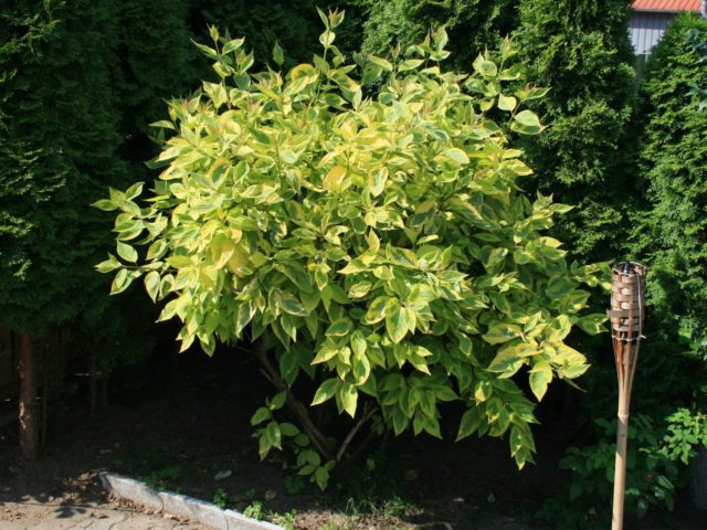 Es ist möglich, Derain männliche Aurea auf einem Stamm zu züchten: in Form eines einzelnen Baumes.