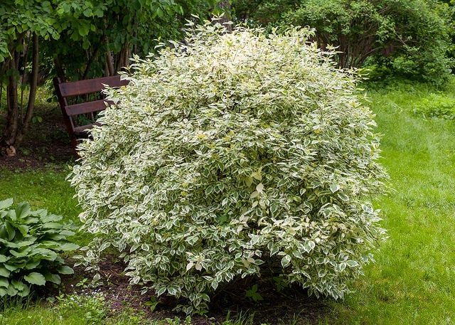 Die Höhe eines erwachsenen weißen Cornus alba elegantissima-Rasens beträgt 3 m. Im Vergleich zu anderen Sorten ist er eine relativ geringe Sorte.