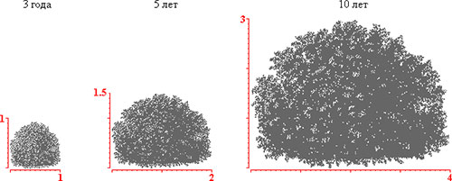 Das Wachstum des Strauchs pro Jahr beträgt 40-60 cm. Die Pflanze entwickelt sich besonders aktiv in den Sommermonaten.