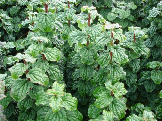 - eiförmige, dunkelgrüne Blätter sind groß und haben einen Durchmesser von bis zu 5 cm. In der ersten Septemberhälfte wird die Blattplatte blutscharlachrot oder ziegelfarben;