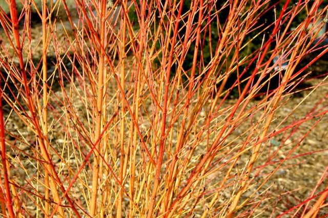 - flexible junge Triebe von deren sind helloliv gefärbt. Mit der Zeit ändern sie es in rötlich oder braun, und im Spätherbst, nach dem Laubfall, werden die Triebe hell burgunderrot;