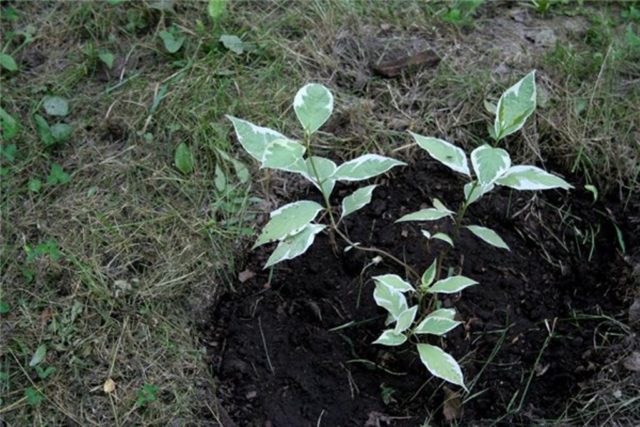 Nach dem Auflaufen erfolgt die Ausdünnung. Nach 4 Jahren, wenn der Derain 80 cm erreicht, wird er transplantiert.