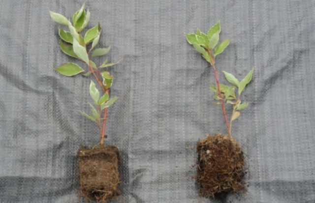 - Wenn das Pflanzmaterial vor dem Pflanzen ein offenes Wurzelsystem aufweist, werden die Wurzeln geschnitten und 4-5 Stunden in warmem Wasser gehalten. Wenn der Sämling in einem Behälter gekauft wird, wird er in eine Pflanzgrube mit einem Erdklumpen gelegt.