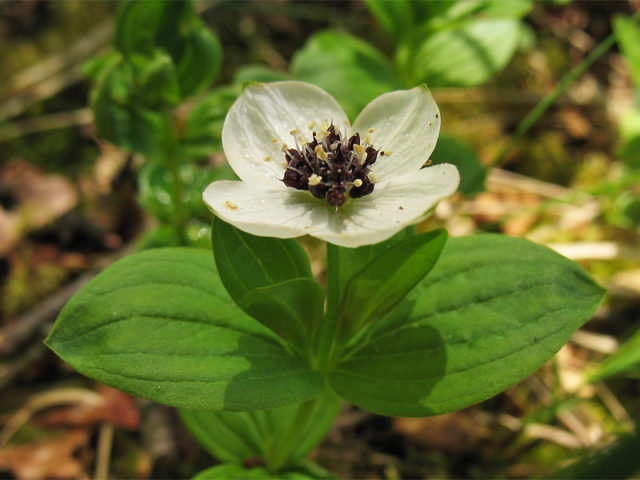Cornus suecica - Der schwedische Derain wächst an den Küsten der Barents und des Weißen Meeres. Sie können ihn in der Tundra und Waldtundra treffen. Im Norden bildet der Strauch in Fichten- und Birkenwäldern kleine Klumpen oder ausgedehnte Dickichte.