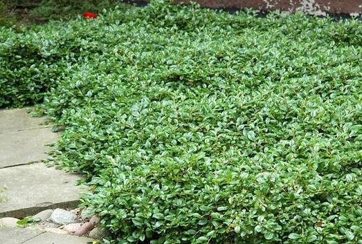 Dies sind die beliebtesten Sorten, die häufig in dekorativen Bereichen zu finden sind und Gebiete schmücken, Hecken schaffen sowie immergrüne Skulpturen. Die horizontale Zwergmispel auf dem Foto sieht genauso beeindruckend aus wie auf der Website selbst.
