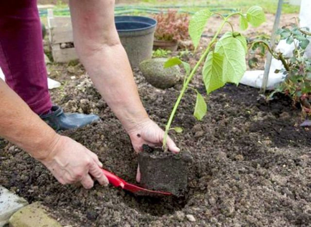 Das Loch sollte 2-mal größer sein als die Wurzel des Sämlings