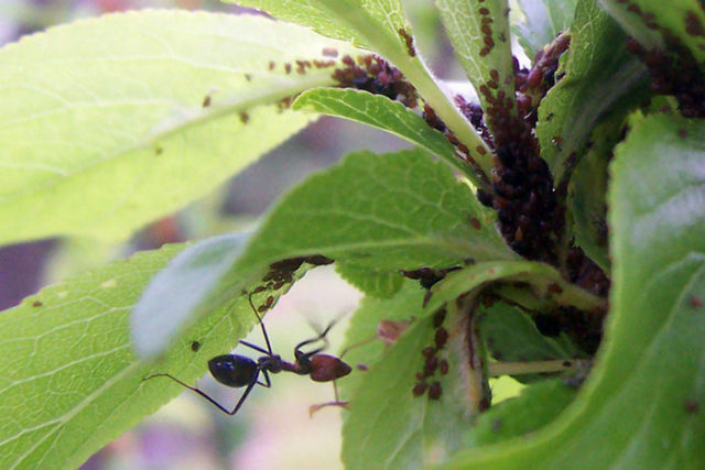 Anzeichen für das Auftreten von Blattläusen sind Verformung und Welken der Blüten sowie das Vorhandensein von Einstichstellen durch Bisse auf dem Laub.