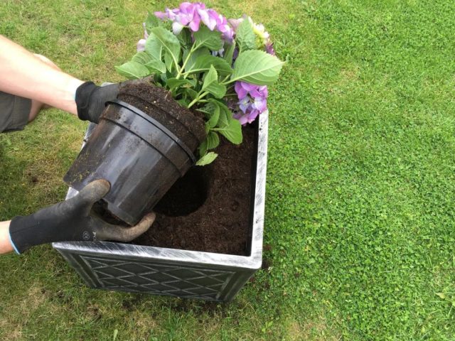 Hortensien, die als Topfpflanzen gezüchtet werden, geraten seltener in Schwierigkeiten, wenn sie im Sommer umgepflanzt werden müssen. Im Gegensatz zu Gartenpflanzen vertragen sie dieses Verfahren viel einfacher. Aber auch hier ist es notwendig, vorsichtig zu sein und einen ganzen erdigen Klumpen an den Wurzeln zu halten. Wenn das Wurzelsystem beim Entfernen aus dem Behälter nicht beschädigt wurde, ist das Ergebnis wahrscheinlich positiv. Trotzdem wird der Umschlag von Topfpflanzen im Frühjahr, im April, empfohlen.
