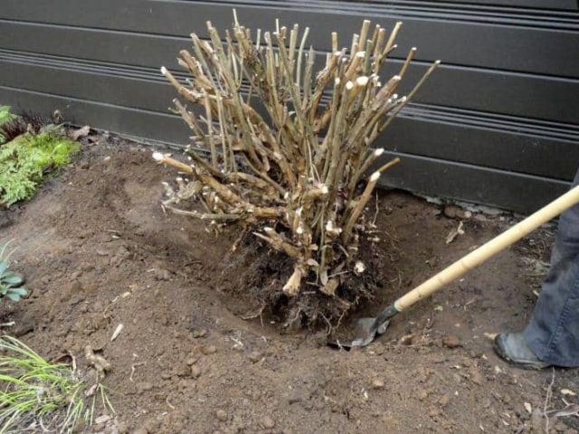 - Vor dem Ausgraben eines erwachsenen Hortensienstrauchs für den Umzug in die Winterlagerung ist es ratsam, einige der alten Triebe auszuschneiden.