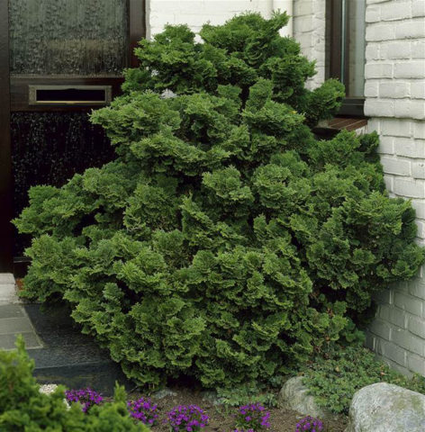 Die stumpfe Zypresse Nana Gratsilis erfordert wie andere Sorten keine komplexe Pflege. Pflanzen verleihen dem Garten einen besonderen orientalischen Charme. Der Standort wird besonders durch einen immergrünen Strauch einer stumpfblättrigen Art in der kalten Jahreszeit wiederbelebt.
