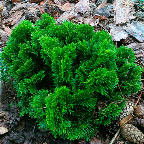 Die stumpfblättrige Zypressensorte Nana Gratsilis vermittelt laut Gärtnern den Eindruck eines sehr flauschigen Busches, da die Zweige nahe beieinander liegen.