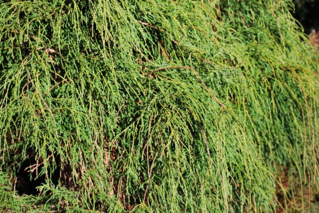 - Phillifera... Langsam wachsende Sorte bis zu 2,5 m Höhe. Die Krone breitet sich in Form eines breiten Kegels aus. Die Zweige sind dünn, lang und an den Enden fadenförmig. Die Nadeln sind dunkelgrün mit Schuppen. Die Sorte stellt hohe Anforderungen an die Qualität und den Feuchtigkeitsgehalt des Bodens.