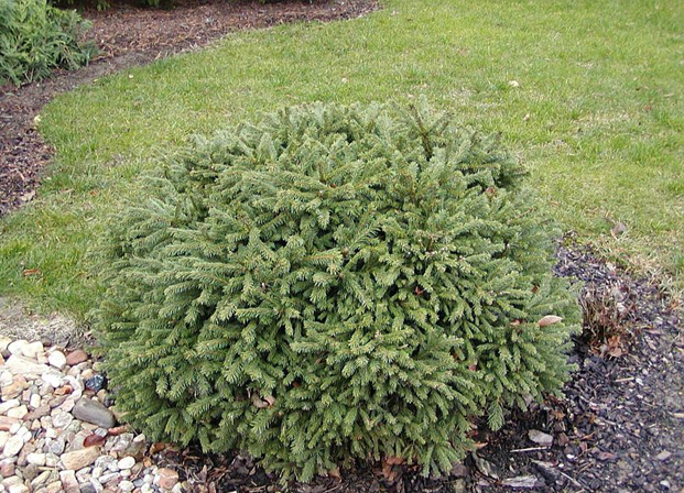 - Konica... Eine Zwergsorte mit einer stiftförmigen Krone. Der Baum wächst langsam. Die Triebe sind gerade, subulierte Nadeln, nach unten gebogen.