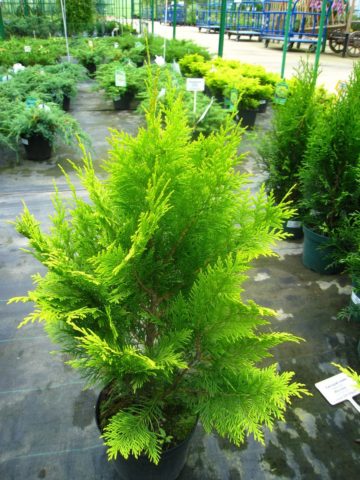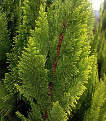 - Lawsons Zypresse der römischen Sorte... Hybrid mit einer schmalen eiförmigen Krone. Die Oberseite mit ausgeprägten Federn. Es entwickelt sich langsam, in 5 Jahren erreicht es 50 cm. Die Triebe sind aufrecht und dicht angeordnet. Die Farbe ist hell, goldgelb, bleibt für den Winter bestehen. Der Baum zeichnet sich durch eine erhöhte Winterhärte aus, die keinen Anspruch auf Bewässerung und Bodenqualität hat. Geeignet für die Erstellung heller Landschaftskompositionen und Musterpflanzungen.