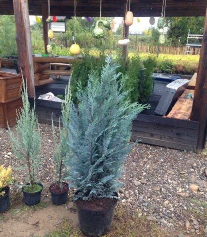 - Lawsons Zypressensorten Columnaris... Ein schnell wachsender Baum in Form einer hohen Säule. Im Alter von 10 Jahren erreicht die Sorte 3-4 m. Die Zweige wachsen in vertikaler Richtung. Die Nadeln sind grau-blau. Die Sorte ist unprätentiös für den Boden und die Wetterbedingungen, sie kann in verschmutzten Gebieten wachsen. Unterscheidet sich in hoher Winterhärte.
