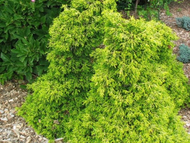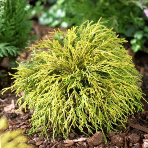 - Tatsumi Gold... Die Sorte wächst langsam, hat eine kugelförmige, flache, durchbrochene Form. Die Triebe haben eine kräftige, feste, gekräuselte, grünlich-goldene Farbe. Anspruchsvolle Bodenfeuchtigkeit und Fruchtbarkeit.