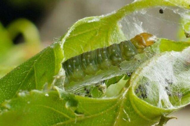 - Blattrollen - Raupen ernähren sich von jungen Blättern und Trieben und schädigen die grüne Masse des Strauchs stark;