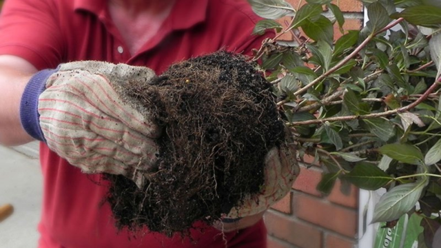 - Im Frühjahr wird der Busch sehr sorgfältig um den Umfang herum eingegraben, um das Wurzelsystem nicht zu beschädigen, und zusammen mit einem irdenen Klumpen herausgezogen.