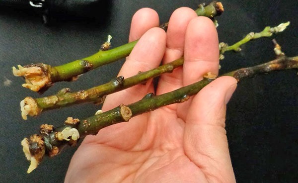 Ein anderer üblicher Weg, um Magnolien zu züchten, ist das Pfropfen. Auf den Stamm einer anderen Kultur oder einer robusteren und frostbeständigeren Magnoliensorte wird ein Schnitt der Sorte Black Tulip mit vegetativen Knospen gepfropft. Am häufigsten wird diese Methode von professionellen Gärtnern angewendet, da die Fortpflanzung durch Pfropfen bestimmte Fähigkeiten und die Einhaltung der Technologie erfordert.
