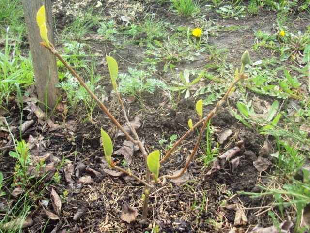 Nach dem Pflanzen wächst Siebolds Magnolie im Laufe des Jahres praktisch nicht, muss aber in dieser Zeit regelmäßig gepflegt werden. Top Dressing, Bewässerung und Hygieneschnitt beschleunigen nur das Wachstum des Sämlings.