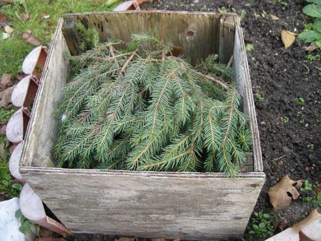 Wenn die Sträucher dennoch auf offenem Boden wachsen, wird im Herbst ein Filmgewächshaus für sie gebaut, in das eine dichte Mulchschicht gelegt wird, oder eine Kiste, auf die Fichtenzweige gelegt werden.