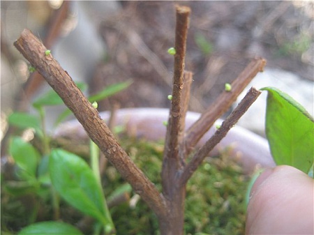 - Für einen prägenden und verjüngenden Schnitt im zeitigen Frühjahr ist es sehr wichtig, nach ruhenden Knospen zu suchen und die darüber liegenden Zweige zu beschneiden. Ruhende Knospen sind normalerweise kleine, rosafarbene Beulen an den Trieben und sind mit den Fingern ziemlich leicht zu fühlen.
