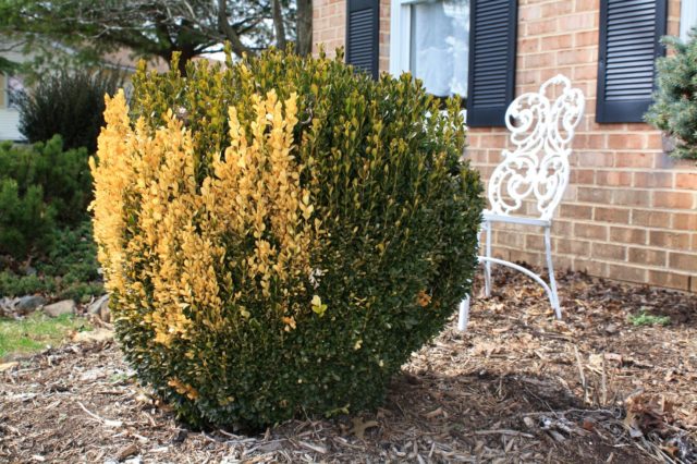 - Eine scharfe Änderung der Beleuchtung nach dem Winter. Die helle Frühlingssonne kann die erwachenden Triebe verbrennen, während die Wurzeln noch nicht voll funktionsfähig sind. Wenn Sie den Buchsbaum in den ersten Sonnentagen nicht beschatten, werden die Blattplatten am Umfang der Büsche unweigerlich gelb.