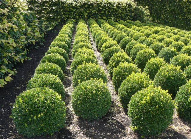 Vor Beginn der heißen Monate sollte der Boden um die Buchsbäume mit Torf gemulcht werden. Diese Technik reduziert die Verdunstung von Feuchtigkeit, hält den Boden locker und bereichert die Ernährung der Büsche weiter. Das Substrat wird in einer kleinen Schicht in den stielnahen Kreis gelegt, ohne den Stiel zu berühren. Andernfalls neigt der mit Mulch bestreute Stamm zum Verrotten. Asche, Dolomit oder Knochenmehl können je nach Bedarf des Buchsbaums unter die Torfschicht vorgesprüht werden.