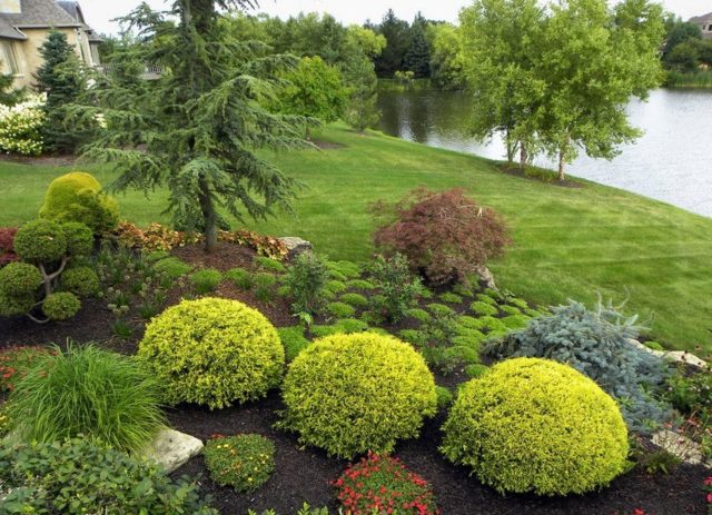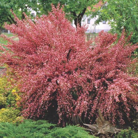 In der Landschaftsgestaltung sind Einzelpflanzungen im Umfang des Strauchs enthalten, aber es sieht auch in Gruppenkompositionen beeindruckend aus.