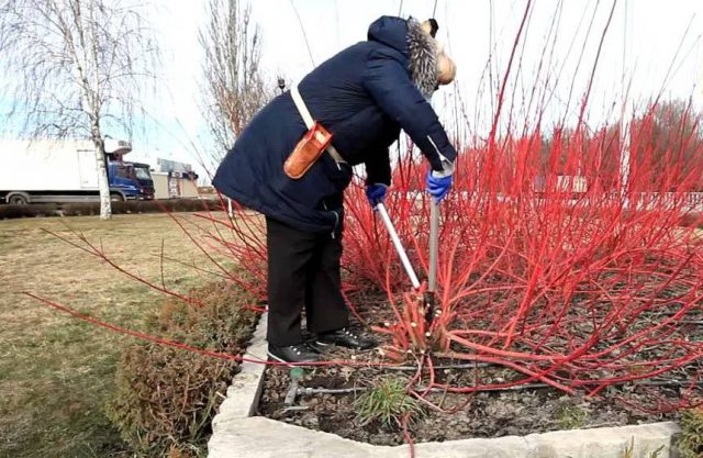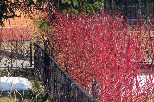 - Hemisphäre. Um diese Figur zu formen, werden junge Zweige im Frühjahr oder Herbst in einer Höhe von etwa 10-15 cm von der Erdoberfläche entfernt. Dieser Schnitt stimuliert die Ausdehnung des Rasens im Durchmesser. Darüber hinaus verjüngt das Verfahren die Pflanze weitgehend und verbessert ihre dekorativen Eigenschaften, da die jungen Zweige leuchtend rot sind.