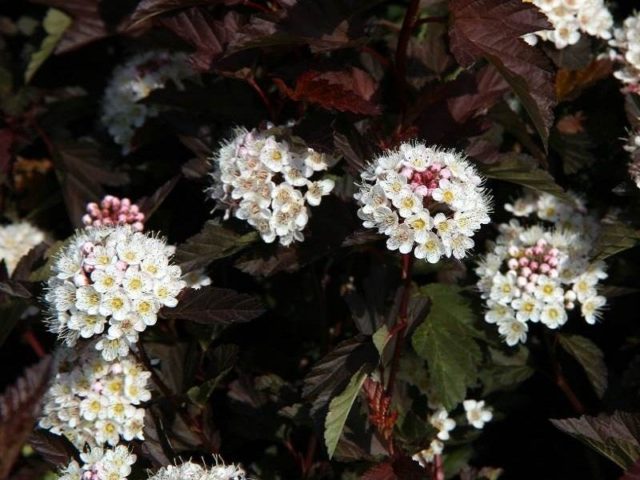 Dekorative Blasen mit purpurrotem Laub lieben offene und sonnige Orte. In schattierten Bereichen verlieren sie ihre helle Farbe und Individualität und werden grün.