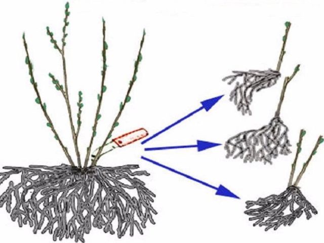 Bei der Ausbreitung durch Teilen der Buchse ist ein Gefühl der Proportionen erforderlich. Sie können die Mutterpflanze nicht in zu kleine Teile teilen. Sie können in der Entwicklung verzögert werden und sterben. Infolgedessen wird die Anzahl der Ziersträucher nicht nur nicht zunehmen, sondern der vorhandene Busch wird zerstört.