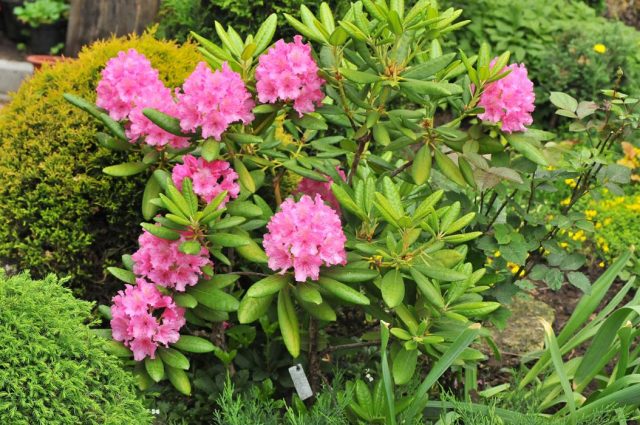 Rhododendron ist ideal für schattige Bereiche des Gartens. Die Pflanze verträgt sich gut mit immergrünen und dekorativen Sträuchern. Gebäude, Zäune und große Bäume bieten Schutz vor dem Wind.