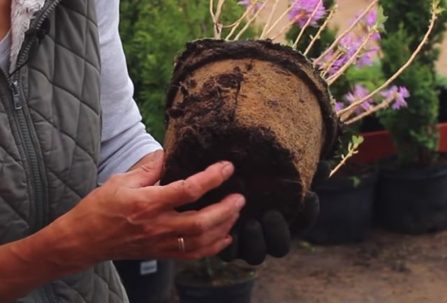 Wenn Sie den Sämling aus dem Behälter entfernen, können Sie sehen, dass die Wurzeln, die mit den Wänden des Behälters in Kontakt stehen, ausgestorben sind und eine Filzschicht gebildet haben. Beim Einpflanzen in den Boden können junge Wurzeln im irdenen Koma die gebildete Barriere nicht durchbrechen. Die Pflanze entwickelt sich in diesem Fall nicht und stirbt ab.