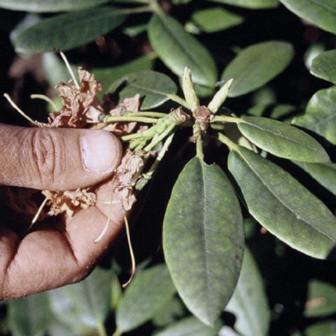 Zecken (Rhododendron und Spinnennetz), Thripse, Schuppeninsekten, Schnecken - eine unvollständige Liste von Parasiten, die die Pflanze schädigen können. Insektizide werden gegen Schädlinge eingesetzt (gemäß den Anweisungen).