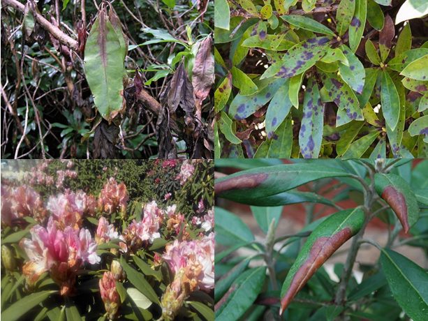 - Rhododendronrost... Die Blätter werden rot, als wären sie mit Rostflecken bedeckt. Behandlung: Kupferpräparate.