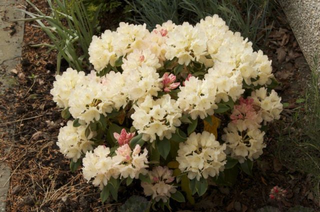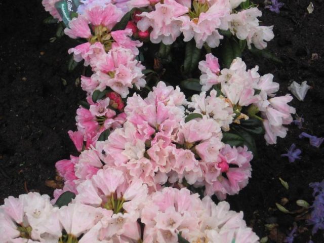 Eine beliebte Sorte des Yakushim-Rhododendrons. Ein erwachsener Busch wächst breit und Sie sind 1,2 m groß. Seine Krone ist kugelförmig und breitet sich aus. Die Blätter sind ledrig, dunkel gefärbt, bis zu 10 cm lang. Das jährliche Wachstum beträgt 8 cm. Die Frostbeständigkeit der Sorte beträgt -23 ° C.