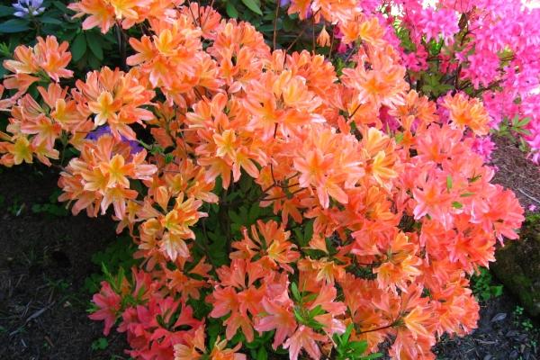 Der japanische Rhododendron wird von Gärtnern wegen seiner beeindruckenden dekorativen Erscheinung mehr geschätzt als andere Laubbaumsorten und eignet sich gut für den Anbau in der Region Moskau. Die Blüte ist üppig und dauert von Mitte Mai bis Mitte Juni. Rhododendronblüten dieser Sorte mit einem Durchmesser von 8 bis 10 cm haben eine leuchtend orange oder rote Farbe mit gelben Übergängen. Auf einem niedrigen, 1,5 m hohen Busch ähneln sie hellen Flammenzungen, die schmale grüne Blätter vollständig unter sich verbergen.