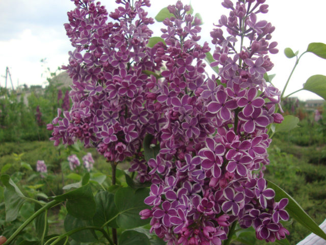 Flieder blüht üppig und sehr dicht. Die Blüten werden in einem Rispenblütenstand gesammelt. Jeder Blütenstand besteht entweder aus einer oder zwei Rispen. Jede Blume ist bis zu 20 cm lang und bis zu 8 cm breit. Jede Blume hat lila Blütenblätter mit einem kleinen weißen Rand an den Rändern.