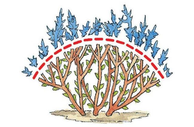 Sie können Sträucher sowohl im Frühjahr als auch im Herbst beschneiden. Nach dem Beschneiden wird die Bepflanzung mit einer Mistlösung im Verhältnis 1: 6 reichlich gedüngt. Gießen Sie die Mischung direkt unter die Wurzeln. Danach können Sie sie mit einer Superphosphatlösung düngen. Die optimale Dosierung beträgt ca. 8 g pro 10 Liter Wasser.