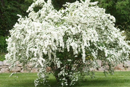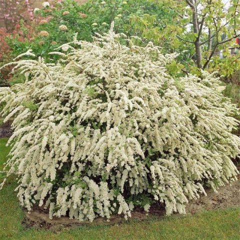 Bäume mit einer sich ausbreitenden breiten Krone sind ein unerwünschter Nachbar für die Weiße Braut. Sie erzeugen eine übermäßige Schattierung und ihr verzweigtes Wurzelsystem stört die Entwicklung von Spirea-Wurzeln. Eine günstigere Kombination mit niedrig wachsenden Nadelbäumen - Wacholder, Thuja, Zypresse.