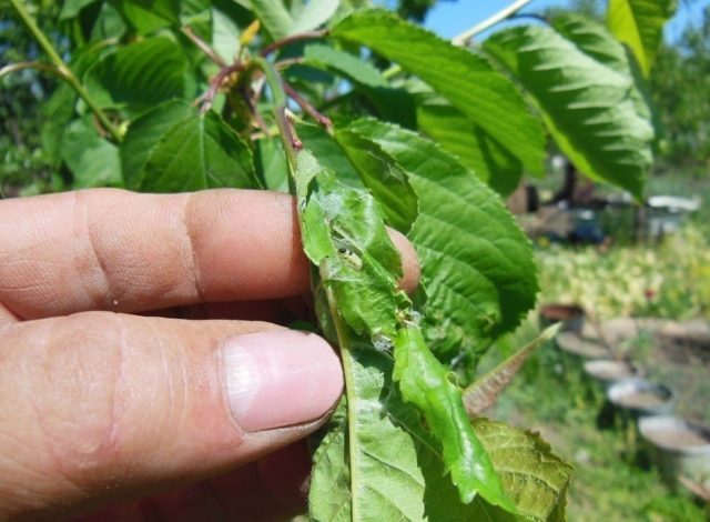 Spinnmilbenweibchen können sogar in den Blättern der Pflanze überwintern und im Sommer Eier legen und Nachkommen schlüpfen. Im Falle einer Spinnmilbenerkrankung können Sie Blätter beobachten, die in eine Röhre gerollt sind, ein Spinnennetz auf den Zweigen. Später beginnt das Laub auszutrocknen und zu bröckeln.