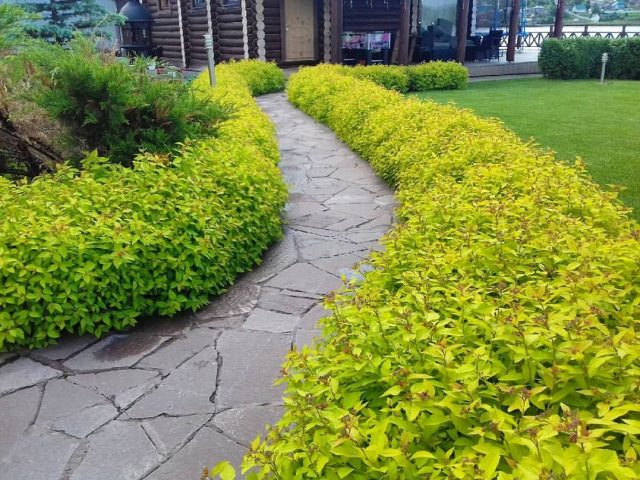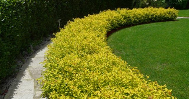 Jede Sorte wird in bestimmten Zusammensetzungen verwendet. Die japanische Goldene Prinzessin hat einen guten Haarschnitt. Daher wird ein schicker Bordstein entlang des Pfades oder ein Streifen zum Umzäunen der Zone aus dem Busch herausragen.
