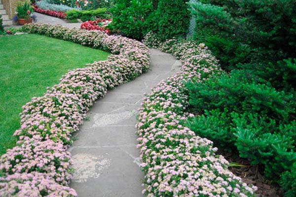 Aber als Grenze ist fast jede Sorte japanischer Spirea geeignet. Büsche mit kugelförmigem Wachstum sehen besonders gut aus. Sie können Gartenwege mit einer Grenze anordnen, eine Grenze für den Rasen festlegen und sogar Gebiete in Zonen unterteilen.