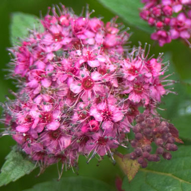 Die Blüte eines Triebs kann durchschnittlich etwa 1,5 Monate dauern. Viele Sorten sind zu einer wiederholten, wenn auch nicht so häufig vorkommenden Blütewelle fähig. Dazu müssen die Spireas nur verwelkte Blütenstände füttern und abschneiden. Blumentöne sind normalerweise in einem rosa-rot-violetten Bereich angeordnet. Und die Blüten selbst sind komplexe, leicht abgeflachte Blütenstände von Corymbose. Die glänzenden Kapseln enthalten etwa 2 bis 2,5 mm lange Samen, die unter russischen Bedingungen perfekt reifen.