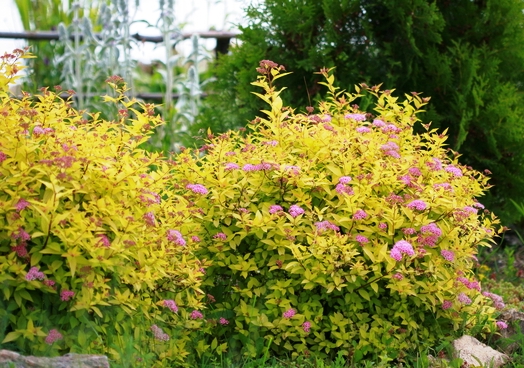 Spireas eignen sich überraschenderweise zum Einrahmen von freistehenden Nadelbäumen und passen gut in jede Zusammensetzung mit Nadelbäumen.