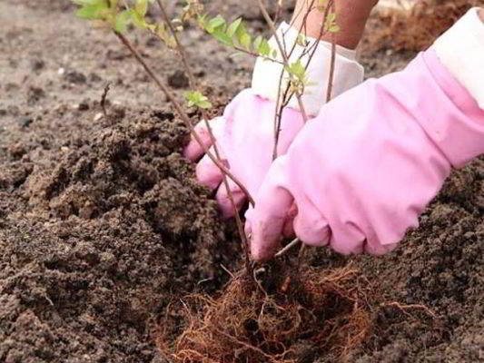 Der ausgewählte Busch wird in einem Kreis gegraben, um den größten Teil der Kronenprojektion zu erfassen. Einige der Wurzeln werden natürlich unweigerlich beschädigt. Sie werden sorgfältig entwirrt und in Teile unterteilt, von denen jeder mehrere starke Stängel und Rhizome haben sollte. Die Wurzelschnitte werden mit zerkleinerter Kohle behandelt und jeder Teil wird in ein zuvor vorbereitetes Loch gepflanzt. Bei sonnigem Wetter werden die umgepflanzten Büsche fast jeden zweiten Tag bewässert.