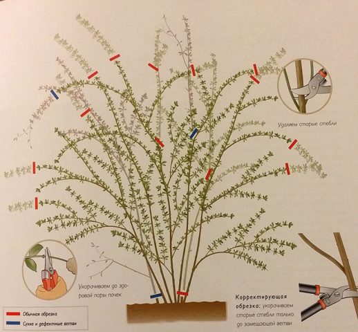In Zukunft erfolgt der Schnitt je nachdem, was von den Pflanzen erwartet wird: Blüte oder Schaffung einer Hecke oder Bordsteinkante. Alle zwei Jahre müssen alte Triebe gekürzt werden, da die Blüte nur bei jungen Trieben der aktuellen Saison erfolgt.